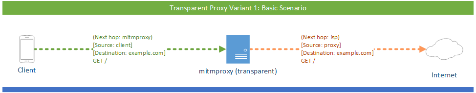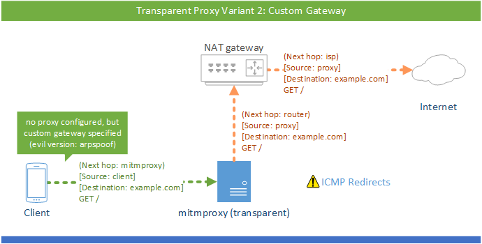 但请注意,请不要将 mitmproxy 放在 NAT 前,否则会使 mitmproxy 无法确定真正的目的地址:
